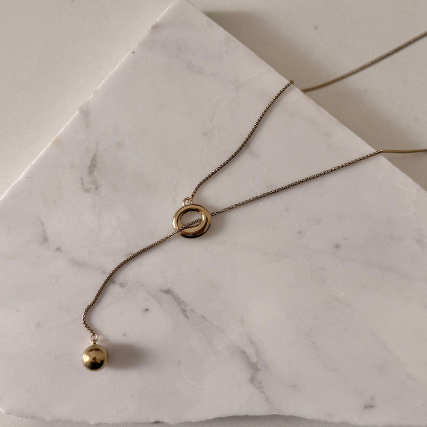 Un collar tipo corbatín de diseño minimalista elaborado en acero inoxidable, perfecto para darle un toque moderno y elegante a cualquier look. Su aro central permite ajustar el largo desde el frente, para llevarlo más pegado al cuello o dejar caer la cadena. Ideal para usar solo o en layers con otros collares.